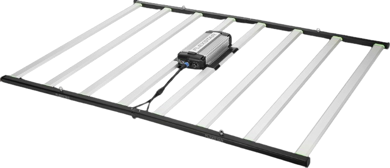 La luz de cultivo LED Flexstar 800W PRO ofrece un espectro completo y alta eficiencia, adecuada para todas las etapas de crecimiento de las plantas. Tiene una vida útil de más de 54,000 horas y resistencia al agua (IP66). Permite controlar hasta 160 luces simultáneamente. Sus dimensiones son 168.1 cm x 120.9 cm x 10.4 cm y soporta varios voltajes de entrada.